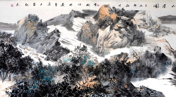 李砥的山水,是性情的産物,亦是山水文化的滋養所致,是人與自然關系的一種和諧感應和契合的結果。在十幾年的山水畫實踐中,李砥訪前賢、重寫生、尋文脈、研筆墨,與天地精神獨往來,逐漸找到了個性化的審美體驗與形式語言,他駕馭畫面的能力越發成熟起來。他的很多畫作,從寫生得來,又賦予筆底山川新的精神指嚮,雄中有秀,柔中見剛,枯潤得當,疏密有致,其煙雲明晦,不是照搬臨摹,而是由直觀感相的摹寫升華爲活躍生命的傳達,直入藝術表達之層面,風神健拔爽邁,氣息圓融暢意。